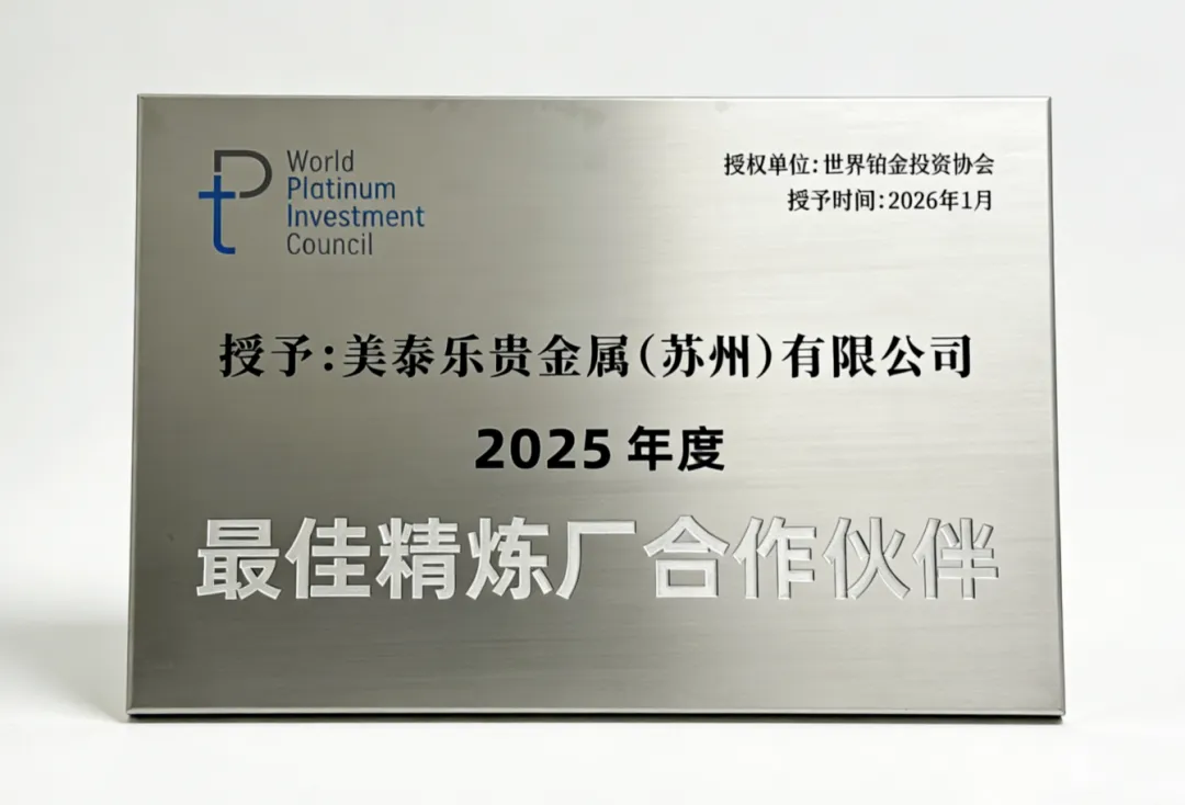 喜报!美泰乐贵金属荣获天下铂金投资协会“2025年度最佳精炼厂相助同伴”称呼
